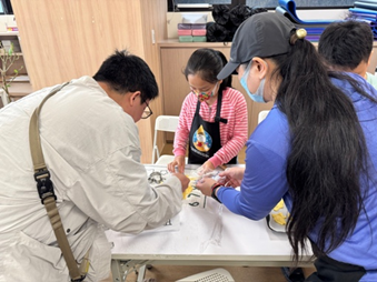 活動當天,家長與孩子們一同來到萬和中心,依照老師安排的座位入座。孩子們一看到桌上的烘焙器具,眼睛都亮了起來,迫不及待地想親手做出一片片可愛的小餅乾。 在老師講解了秤料和揉麵團的步驟與規則後,家長和孩子們開始一起動手製作。